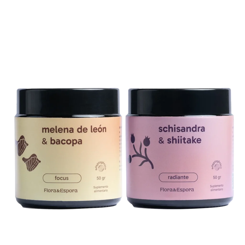 Radiante polvo adaptogénico, complementa este proceso aportando antioxidantes, adaptógenos y nutrientes que sostienen la vitalidad y el equilibrio oxidativo celular y adaptación al estrés.